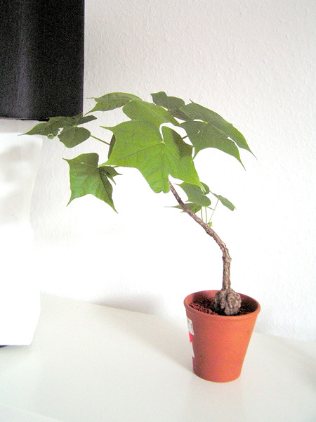 - Mein heimlicher Liebling: Firmiana colorata - gerade mal seit 2 Wochen bei mir und schiebt schon ganz wild Blätter. Angeblich mag sie es ja auch schön feucht - hat sie schon jemand erfolgreich überwintert?