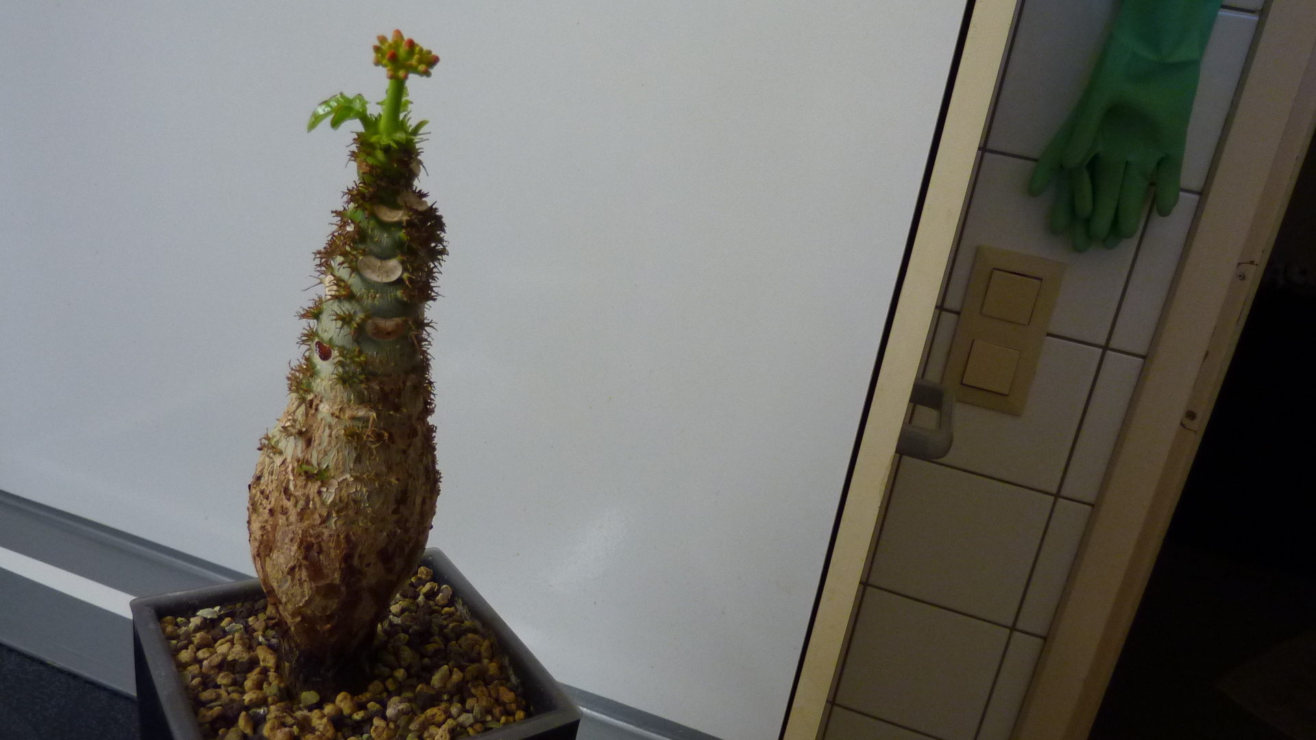 meine Jatropha hat sich, nach Abwerfen aller Blätter, jetzt entschlossen, schon wieder einen Blütentrieb zu bilden.