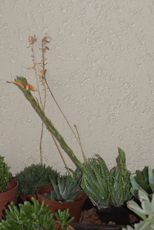 Es ist der dritte !!! Blütentrieb hintereinander, ich frage mich ernsthaft, ob sie sich vielleicht übernimmt, aber was soll ich machen ? Immerhin bildet sie jetzt auch wieder Blättchen, was mich sehr freut.