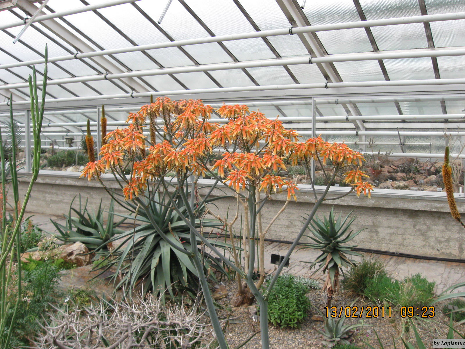die flachen schwarzen könnten Agaven oder Yucca sein, die mit dem Papierartigen Rand Aloe, die runzelige Kugel rechts oben evtl. eine Burseraceae, die mit den "Puschel" vielleicht eine Strelitze, die braunen kügelchen Euphorbien und die länglichen Adenium.