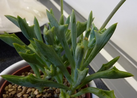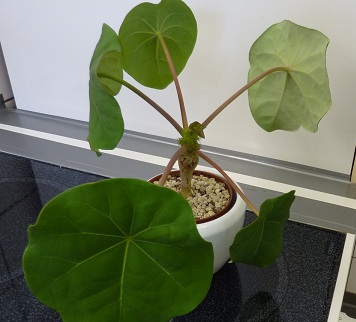 hatte Euch ja am 20.9. meine neu ausgetriebene Testudinaria gezeigt. Heute, 5 Tage später, ist der Trieb schon doppelt so lang.