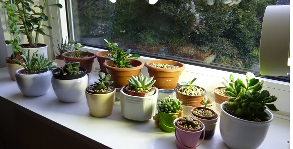 Hier mal mein Sukkulentenfenster, meine Jatropha steht allerdings im Wohnzimmer