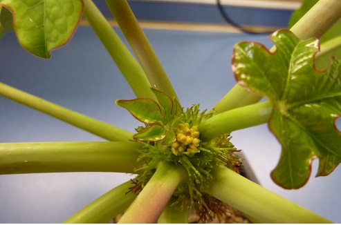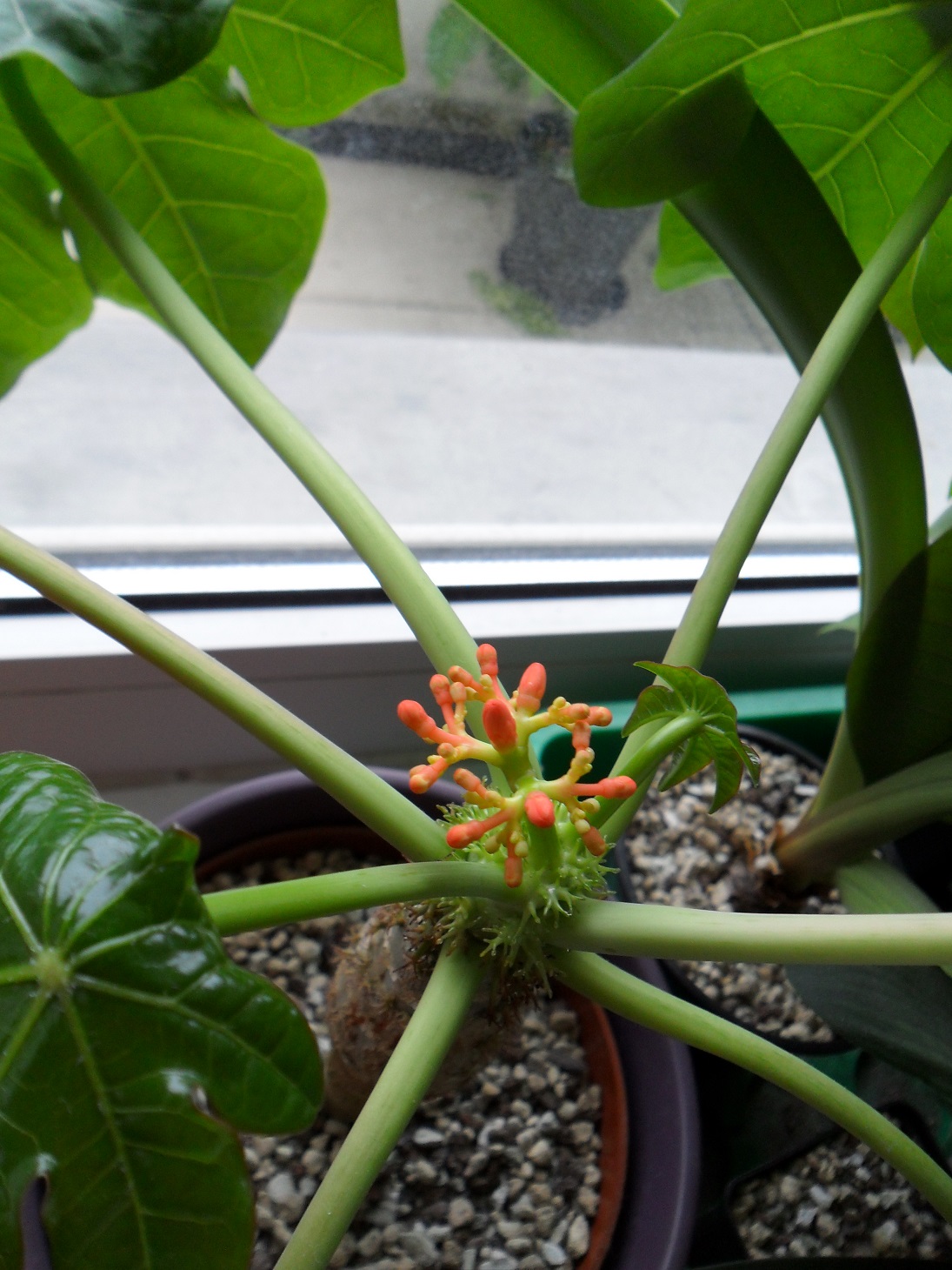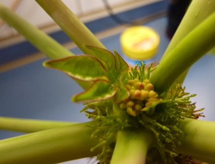 Meine Jatropha hat inzwischen ein Zäpfchen im Topf, ich hoffe, es rottet alle Schildläuse aus, ansonsten schneide ich die 3 befallenen Blätter ab, auch wenn´s weh tut