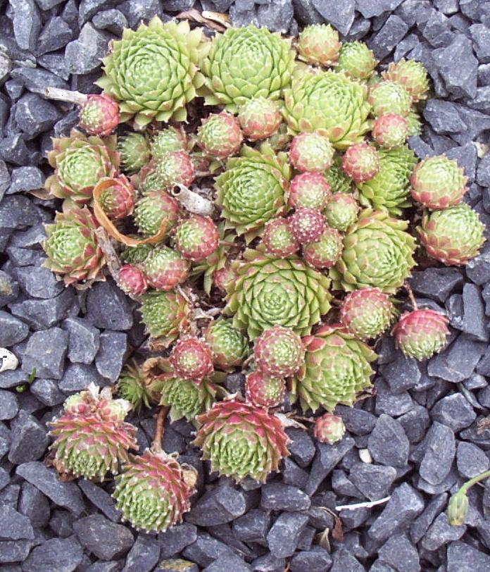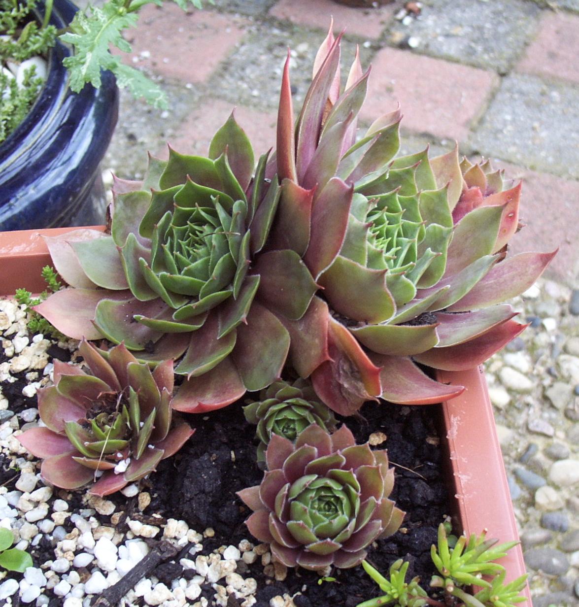 So, jetzt hab ich hier auch noch ein paar Photos von meinen Sempervivummsen. Ich habe die Namen dazugeschrieben, unter denen ich sie gekauft habe; die nicht benannten sind Ableger von "Altbeständen" meiner Mutter.