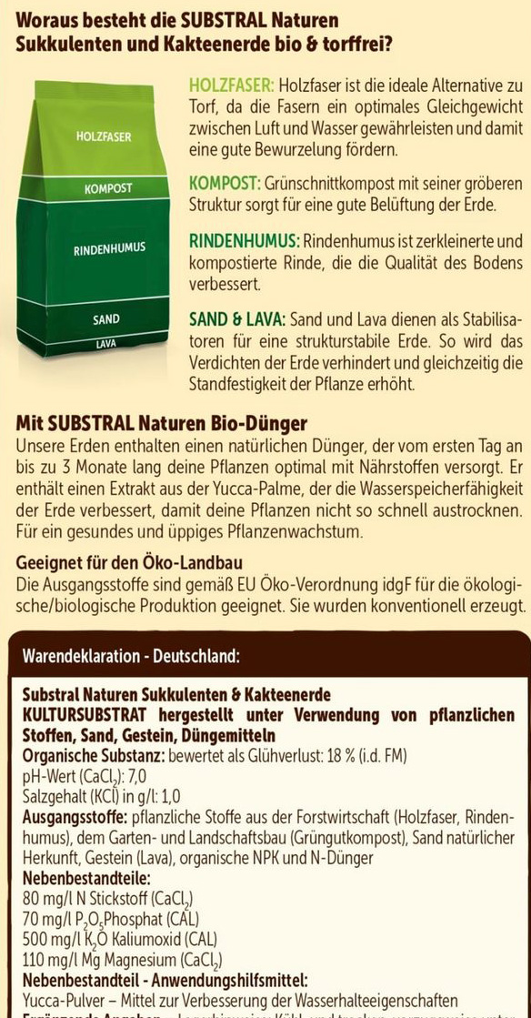Das Substral Naturen aus deinem Bild halte ich für viel zu humuslastig. Ich empfehle immer die Substrate von Kakteen Haage und von Vulkatec. Da kannst du nach Bedarf bis zu 30% Blumenerde untermischen.
