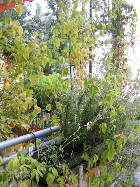 Jetzt sind sie trots der eher schlechten Qualität riesig, ein Trieb geht über den gesammten Balkon, ist also ungefähr 3 m lang