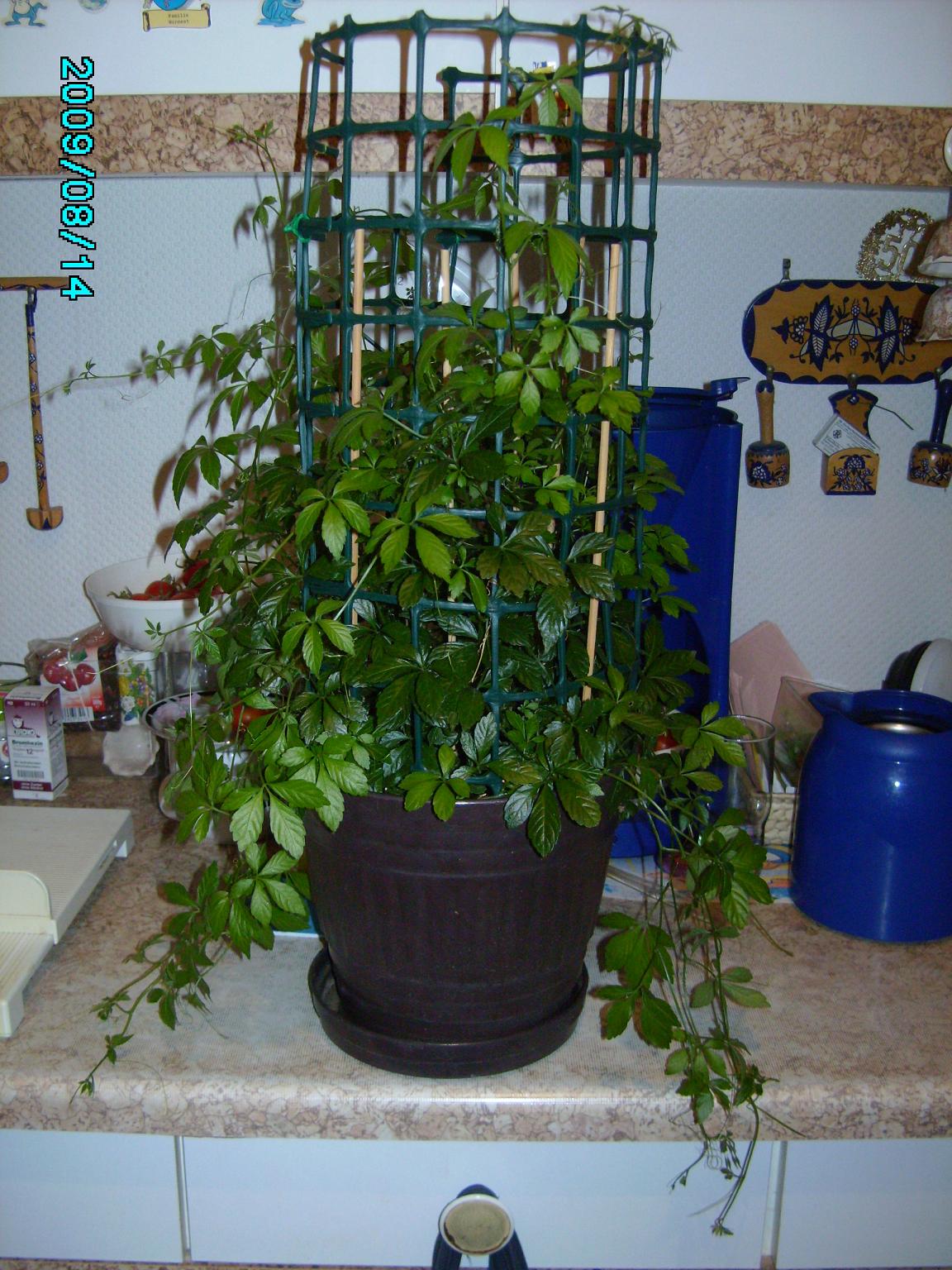 oder ich seh die blüten im busch nicht^^ weil ich meine pflanzen sehr stark wickele an ein stelbst bebasteltes rankgitter aus 4 metall stangen für die festigkeit jedemenge schaschlikspießen und 5 bis 6 bambus rohren und alles wird mit wurstgaren verbunden