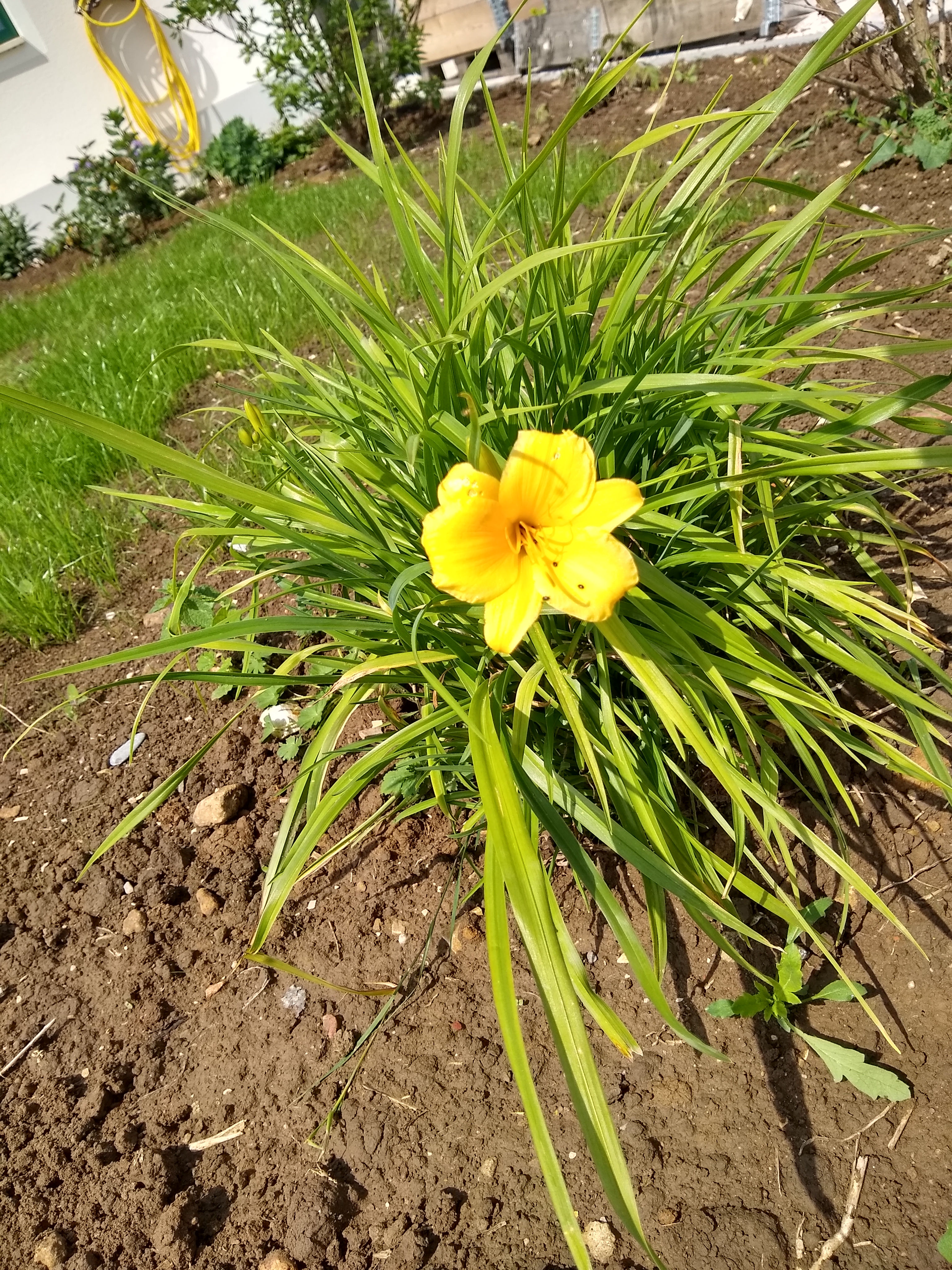 Mein "Überraschungsgras" hat sich als Taglilie entpuppt und nun kann ich mich an den hübschen gelben Blüten erfreuen
