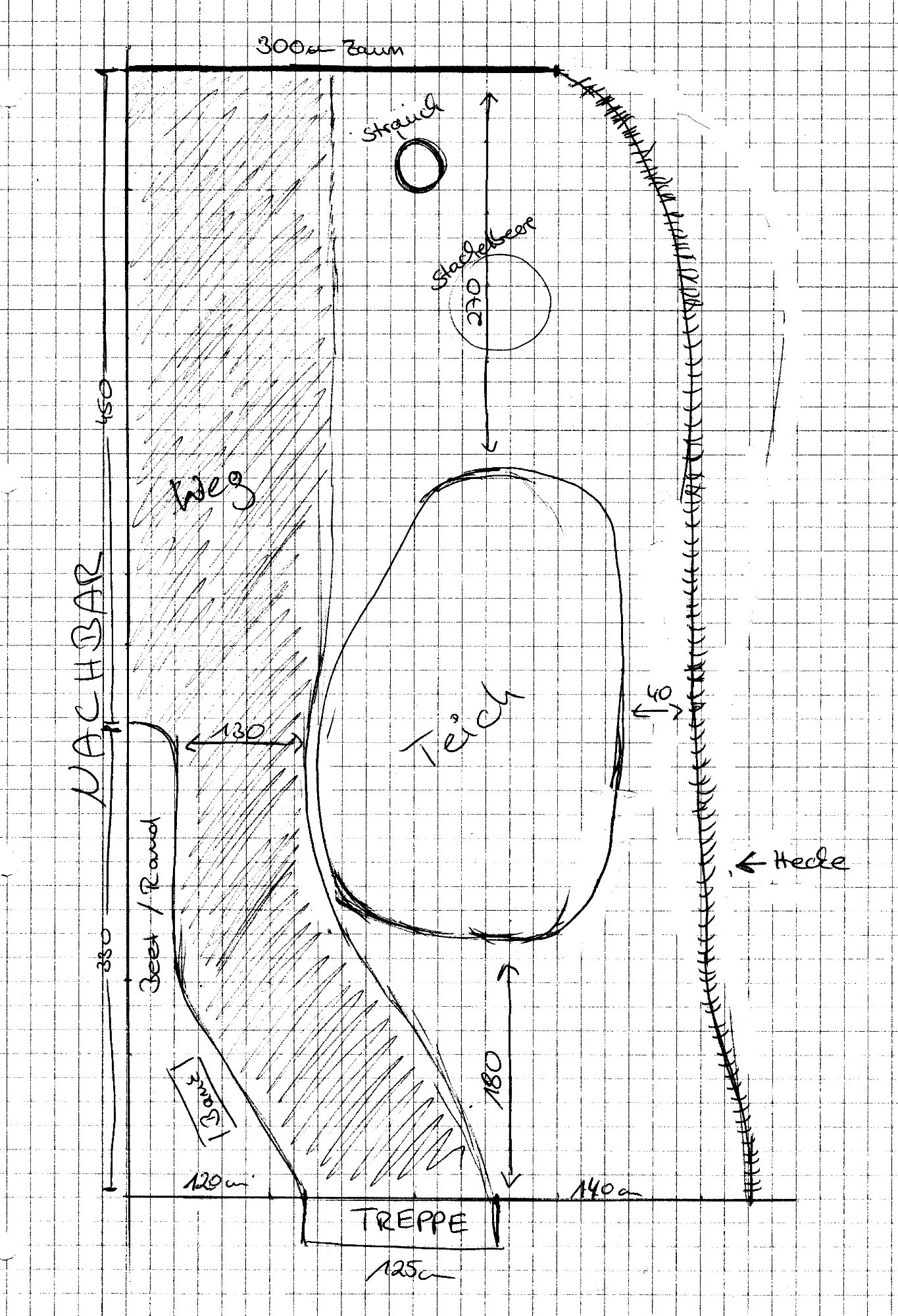Für die karpfenartigen Fische, und auch aus optischen Gründen, würde ich eine dünne (max. 5 cm) Schicht Rheinsand auf dem Boden verteilen, damit sie etwas zum "Gründeln" haben. Kies wäre hierfür nicht so gut geeignet. Außerdem lagert sich der entstehende "Mulm" auf dem Rheinsand ab und bleibt ggf. für eine Filterpumpe oder einen Teichsauger erreichbar. In den kiesigen Pflanzzonen kann dieser Mulm versickern, dient zusätzlich als Pflanzennährstoff und stabilisiert das biologische Gleichgewicht des Teiches.