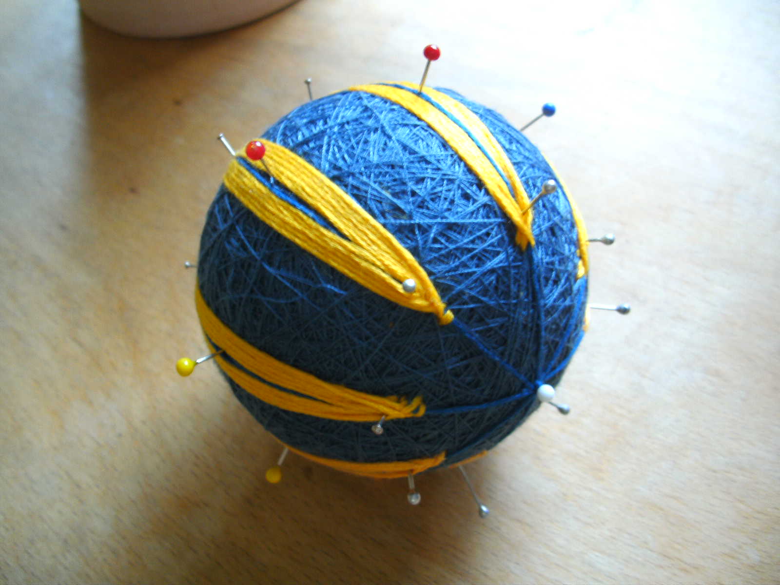Habe bisher 6cm-Kugeln verarbeitet, die lassen sich wirklich mit dem Nähgarn schön rund und gleichmäßig bewickeln.