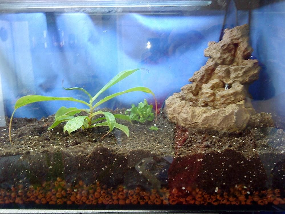 Als drainage habe ich auf Blähton zurückgegriffen und zur Erhöhung der Luftfeuchtigkeit habe ich mir im Zoohandel einen Wasserfall besorgt.