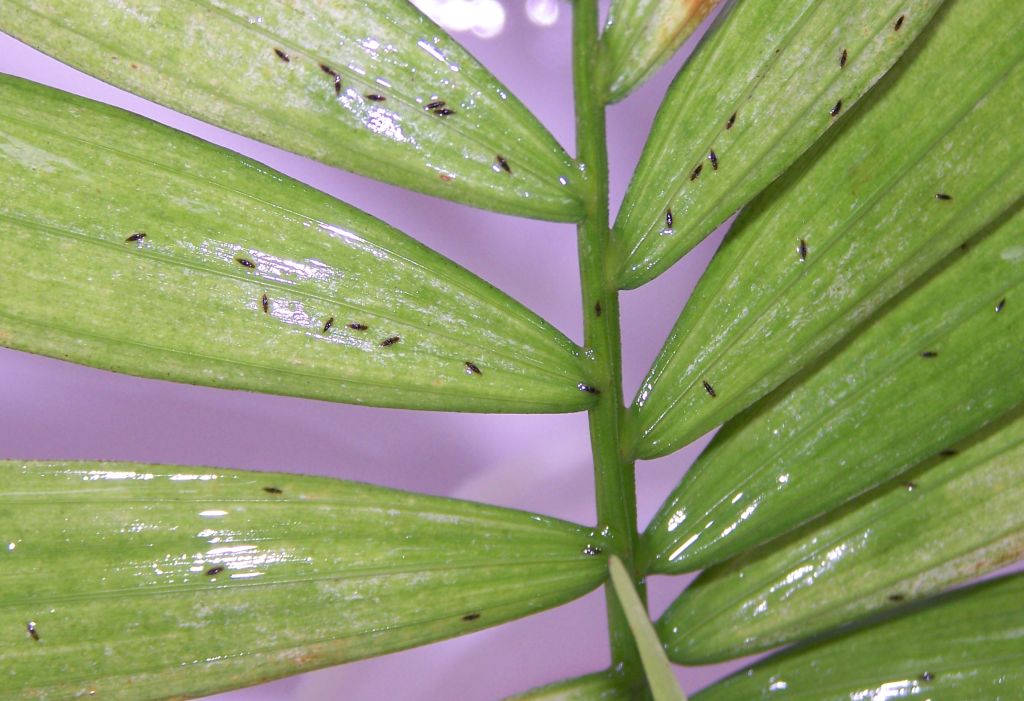 Sehr viele auf einer Bergpalme (dort waren sie schwarz, ein Foto gibt es davon im Anhang), weitere auf meinem Croton und auch einige auf einer Dracaena.