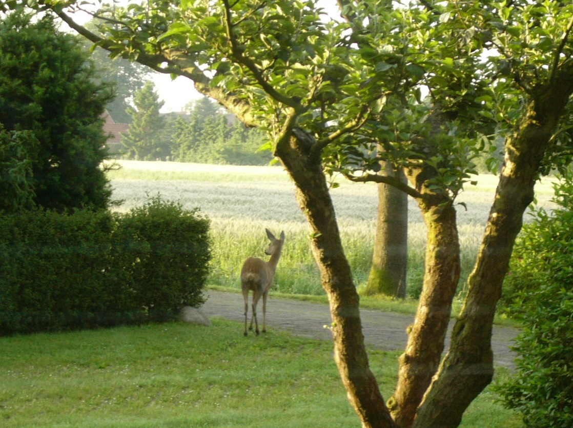 Das ist ja lustig ein Reh auf dem Grundstück.Sind die anderen Tiere auch auf deinem Grundstück???? .Das würde ich gerne noch wissen .
