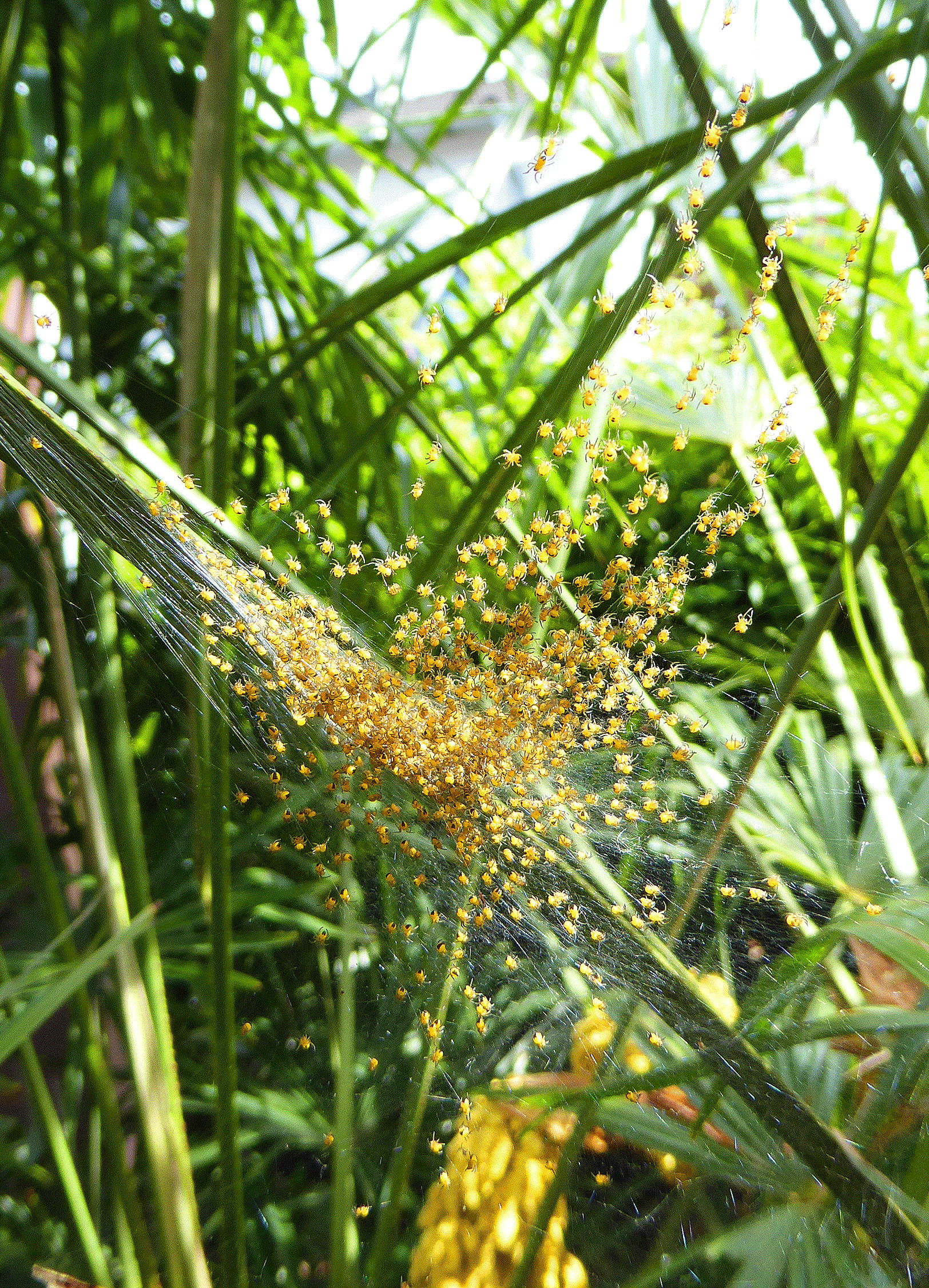 wir wollten sie eben beobachten und fanden den Bau des Kokons interessant. Naja, dass die Spinnenbabys dann überall rumkrabbeln, damit hatten wir nicht gerechnet...