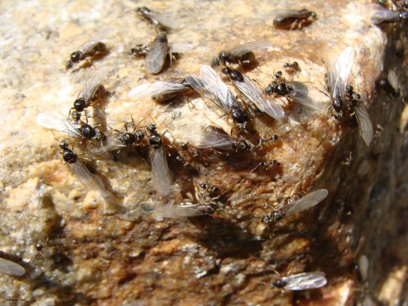 die bienchen sehen ein bißchen wie riesige fliegende ameisen aus, also schwarz und ziemlich schmal, aber durchaus "bienig", nicht behaart. werde bei gelegenheit ein foto einstellen.