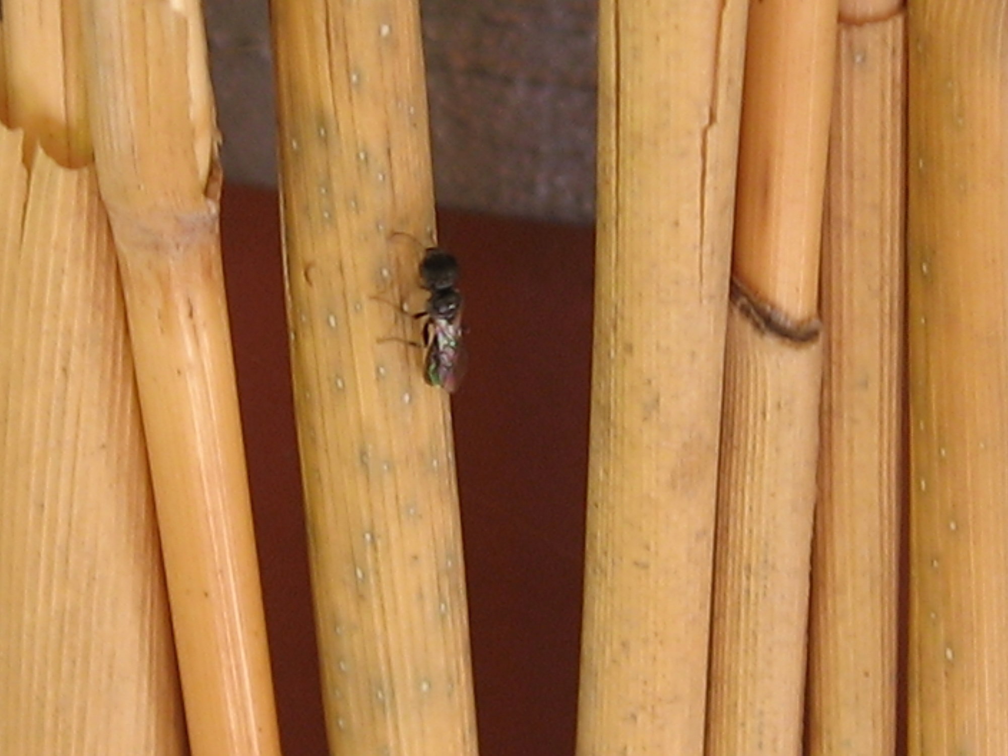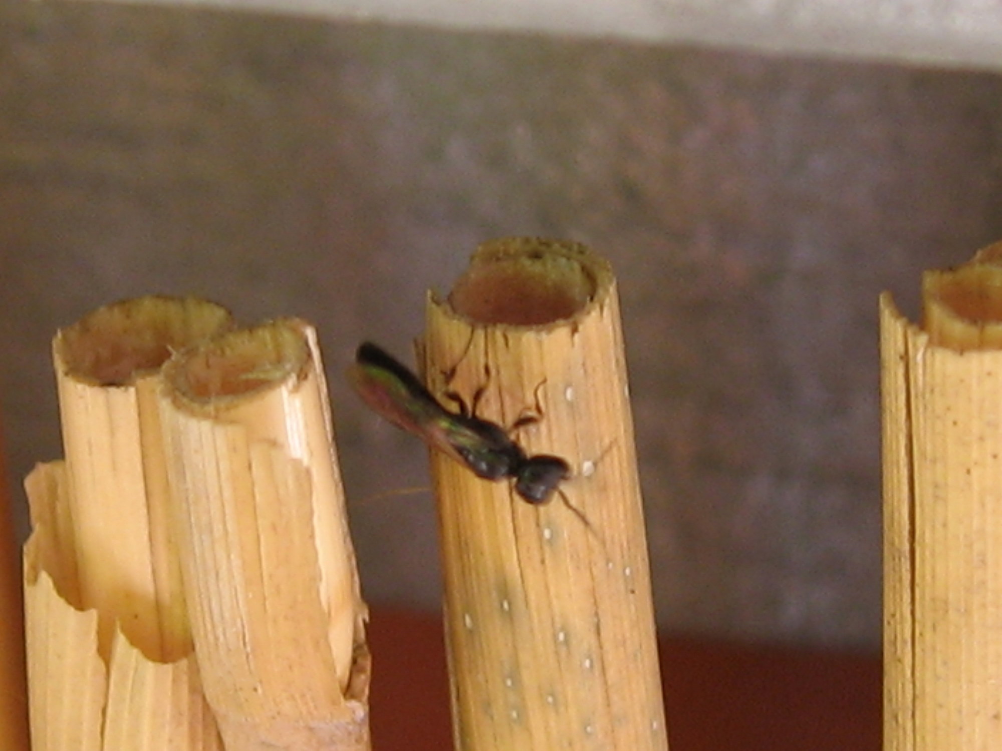 An der Blüte sind die zum Speisen. Für ihre Larven tragen sie Beutetiere ein, vielleicht kleine Spinnen.