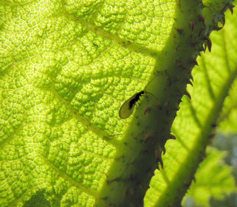 Schlammfliege-unter dem Blatt-von-Gunnera-spec.JPG