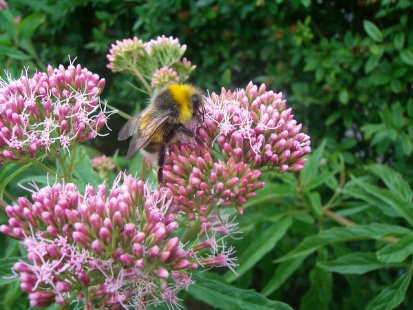An der Blüte sind die zum Speisen. Für ihre Larven tragen sie Beutetiere ein, vielleicht kleine Spinnen.