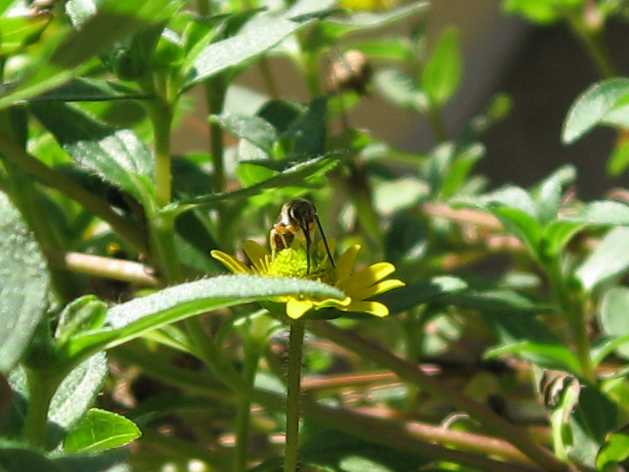 An der Blüte sind die zum Speisen. Für ihre Larven tragen sie Beutetiere ein, vielleicht kleine Spinnen.