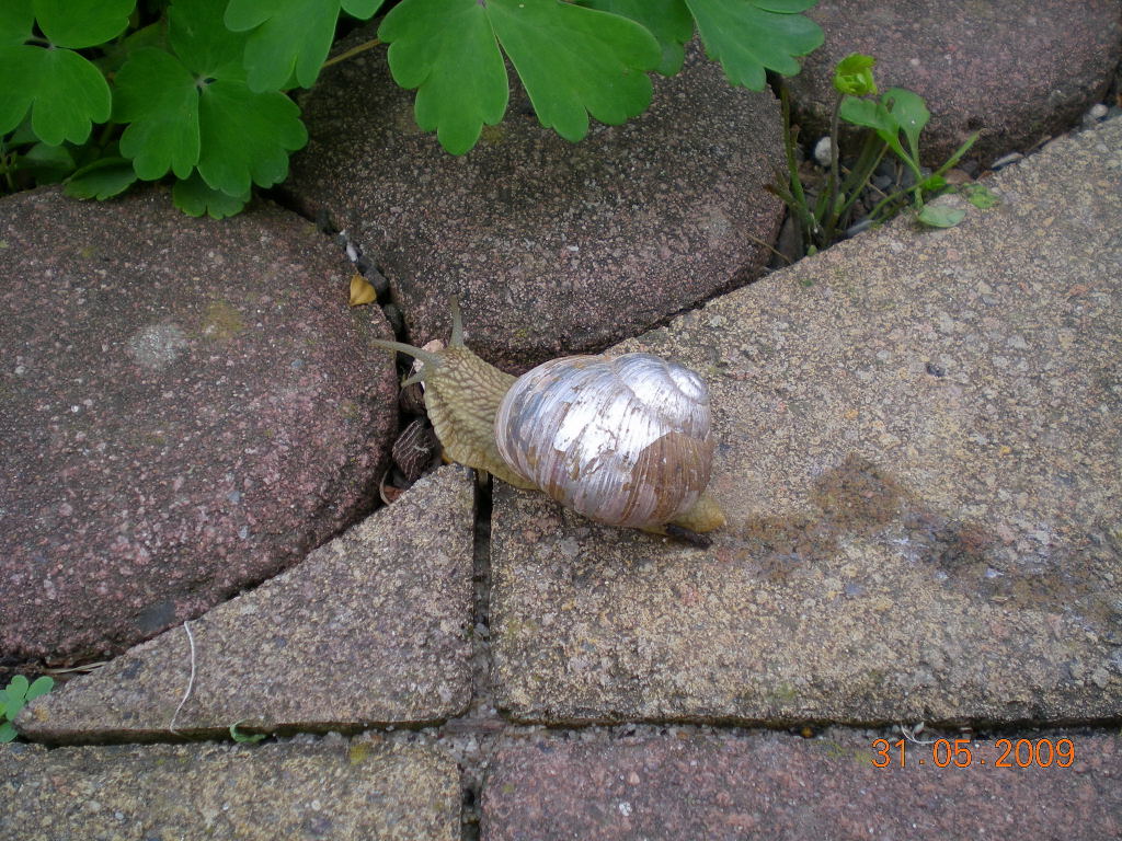 Vermutlich war ihr Programm: lieber ruhig verharren, bis es dunkel wird. Denn als ich sie in die Hand nahm und auf die Eisenplatte zum Fotografieren legte, war ihr das wohl doch zu ungeschützt und sie fing an zu laufen. Na, ja, nach dem Fototermin habe ich sie dann auch in das hohe Kraut an der Hecke gebracht... Da hat sie Glück gehabt . . .