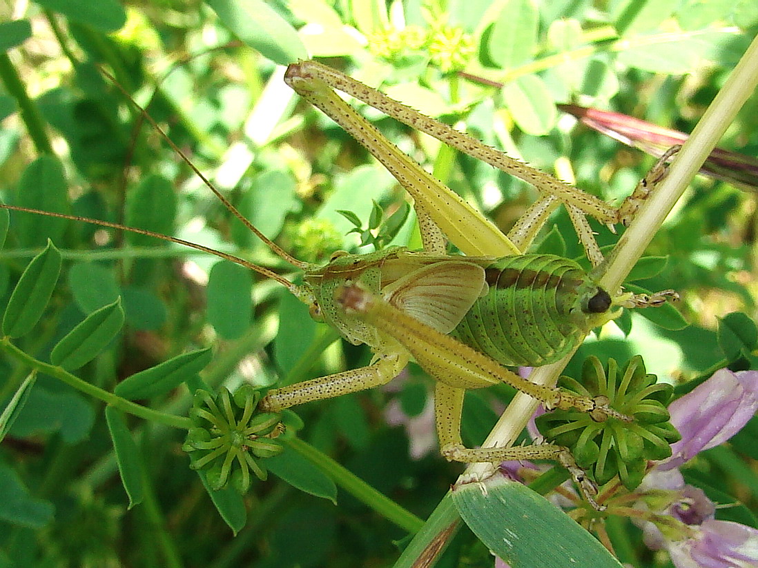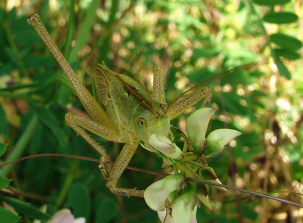 ich hab jetzt herausgefunden was es ist. ich kenn die als erwachsene, da sehen sie so aus. & der, den ich erfragt hab, ist eine nymphe davon, ein heupferd im larvenstadium quasi.
