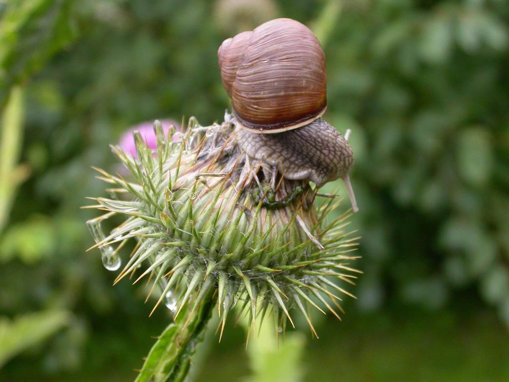 Da fällt mir eine ähnlich verrückte Weinbergschnecke ein - zwar nicht in meinem eigenen Garten fotografiert und auch nicht ganz aktuell, aber muss euch das Foto einfach trotzdem zeigen!