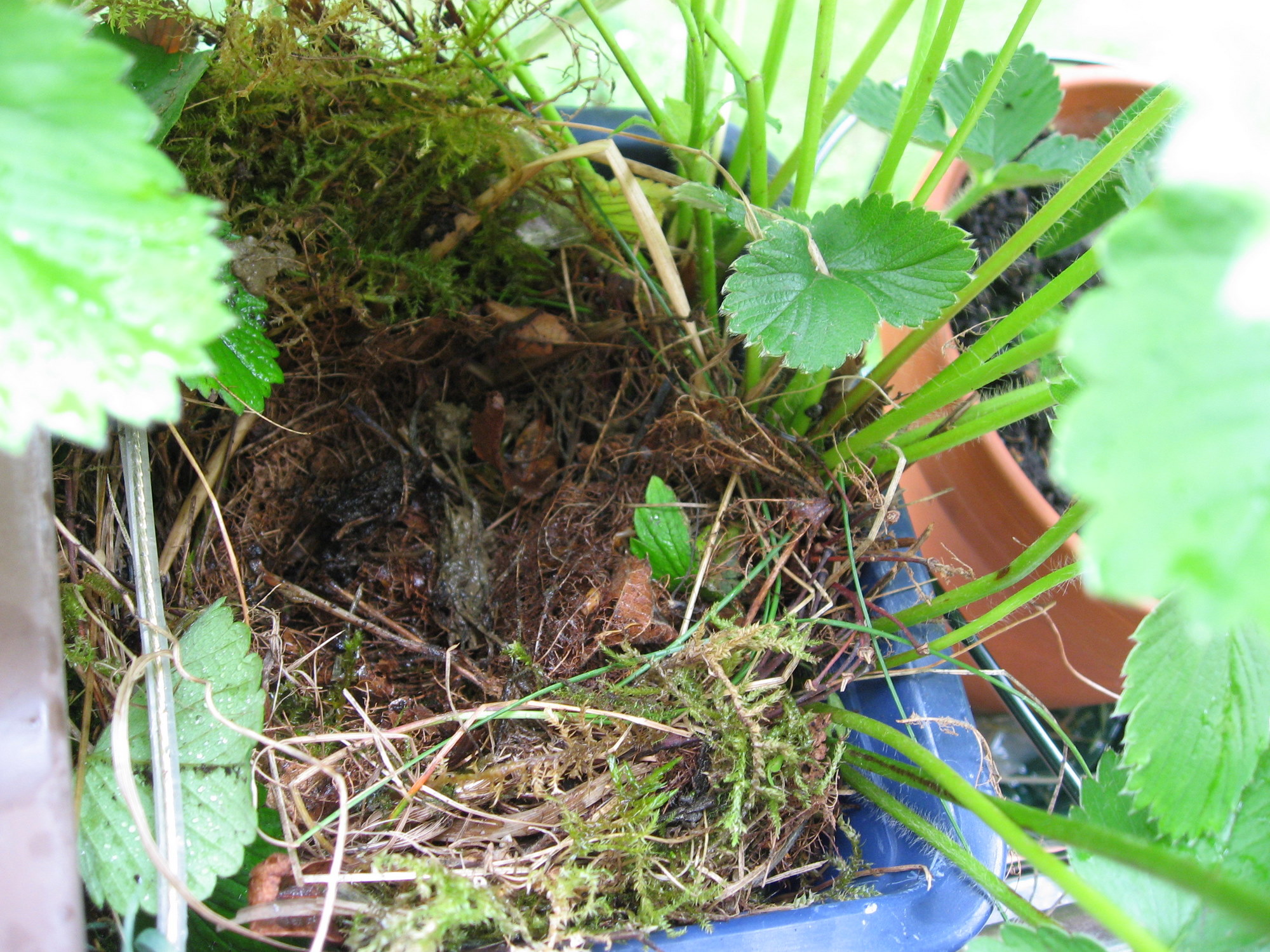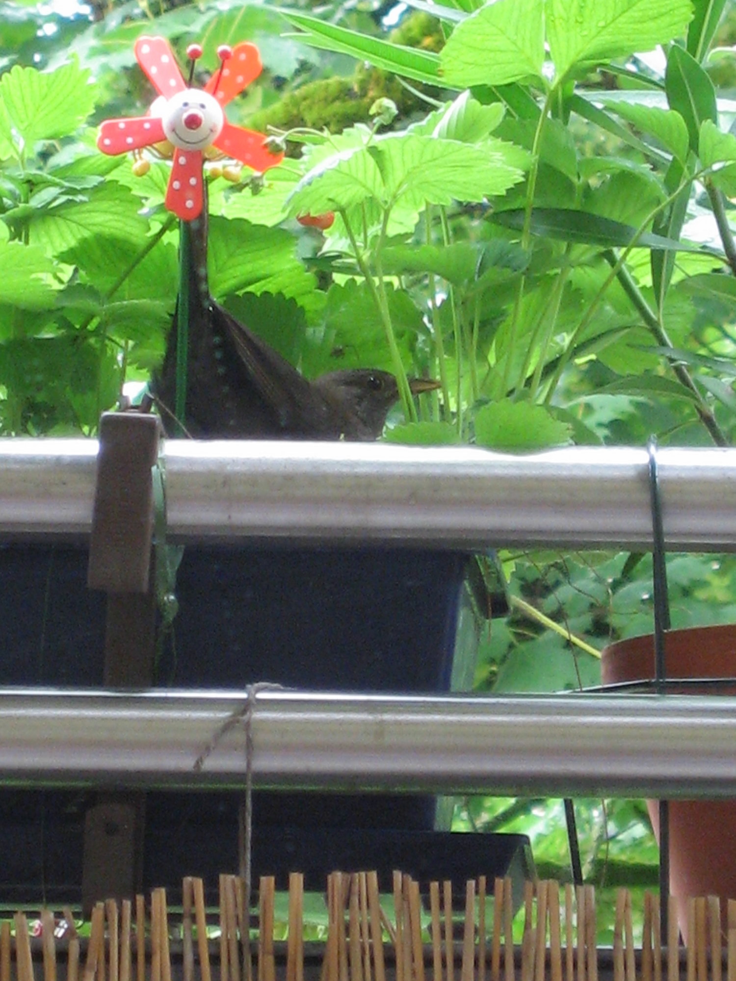 am wochenende hat eine amsel angefangen, in meinem erdbeerkasten ein nest zu bauen. leider hat sie wieder damit aufgehört. war ihr wohl zu gefährlich in meinem kleinen balkongarten