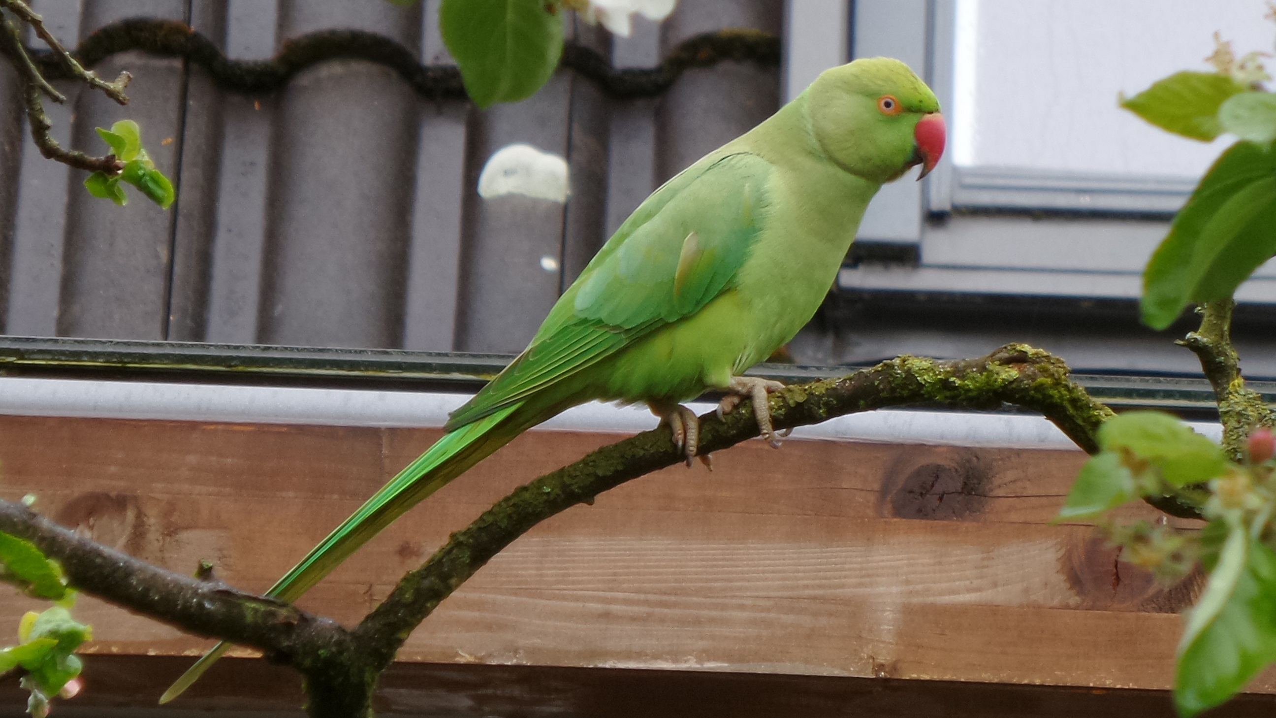 Ja, in Köln-Riehl haben sie schon lange eine neue Heimat gefunden, nur auf die rechte Rheinseite kommen sie erst seit wenigen Jahren. Ich habe sie schon einige Male beim Überflug beobachtet. Das sie jetzt jeden Tag in meinem Garten anzutreffen sind und die Futterhäuser plündern, ist aber ganz neu...