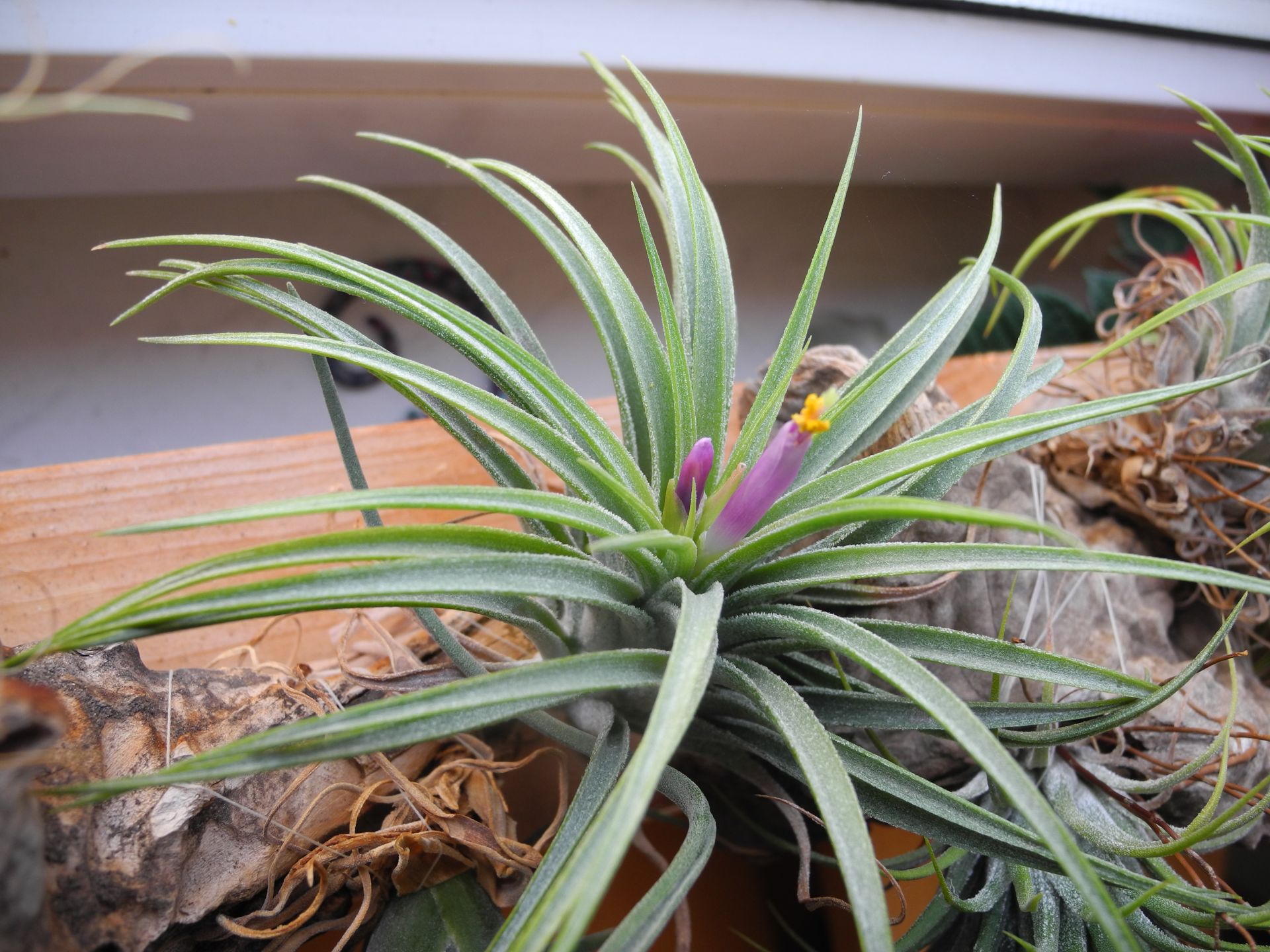 Hier sind mal 2 meiner Tillandsien die anderen fotografiere ich mal bei besserem Licht .