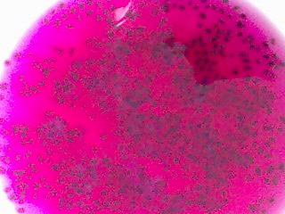 Es nahm sofort eine wunderschöne Intensiv-violette Farbe an (So lässt sichs am besten beschreiben, obwohl die Farbe wunderbar leuchtend ist) und durch umrühren und trennen der miteinander verklebten Samen wurde es noch intensiver.