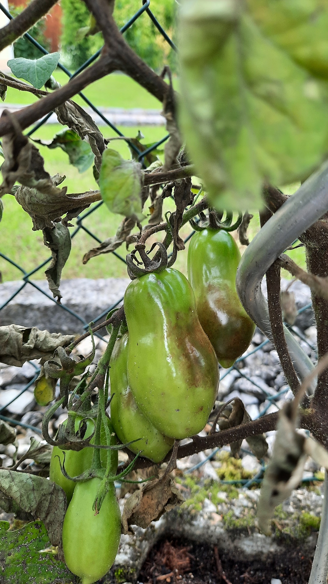 Leider gab es jetzt bei uns so viel Regen und es ist relativ frisch, sodass ich befürchte, dass sich meine lieben Tomaten langsam verabschieden... Sie stehen ohne Überdachung in Pflanzsteinen, was ihnen über die vielen Jahre sehr gut bekommen ist. Heuer aber - das Wetter ist sehr suboptimal :'( Wobei es sehr seltsam ist, dass bei den Nachbarn die Tomaten mit einem kleinen Dach drüber und sogar die im Gewächshaus eine ähnliche Krankheit haben. Jedenfalls befürchte ich das Schlimmste und der Regen ist wohl auch noch nicht vorbei in den nächsten Tagen :(