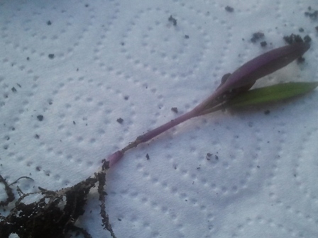 Ich bin etwas besorgt um meine kleinen Pflänzchen. Sie sind bis jetzt gut aufgegangen, habe verschiedene Sorten von Paprika und Tomaten angesät (in kleinen Töpfen auf meiner Terasse). Sind ungefähr 4 - 10 cm hoch. Gestern bemerkte ich, dass 3 davon einfach "umgekippt" sind. Sie sahen noch gesund aus, aber als ich sie rauszog, sah ich, dass im Bereich, wo der Stiel aus der Erde kommt, alles rundherum abgeknabbert war (Wie ihr auf dem Foto sehen könnt). Zwischen Wurzel und Pflanze war also nur mehr ein zwirndünner Faden.