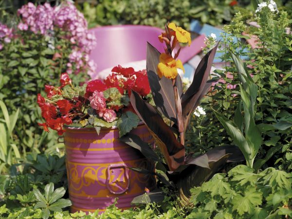 Dekorative Sommerblüher in Gefäßen setzen nicht nur auf Balkon und Terrasse Akzente, sondern auch im Garten. Bereiche, in denen keine Pflanzen blühen, werden mit blühenden Zwiebel- und Knollengewächsen in Gefäßen schnell attraktiv. Mit Pflanzen in Töpfen kann auch Neuland erobert und begrünt werden: Gepflasterte, graue, ungenutzte Flächen rund ums Haus, Treppen, Innenhöfe und Hauseingänge lassen sich mit ihnen gut verschönern und machen das Zuhause einladend.
