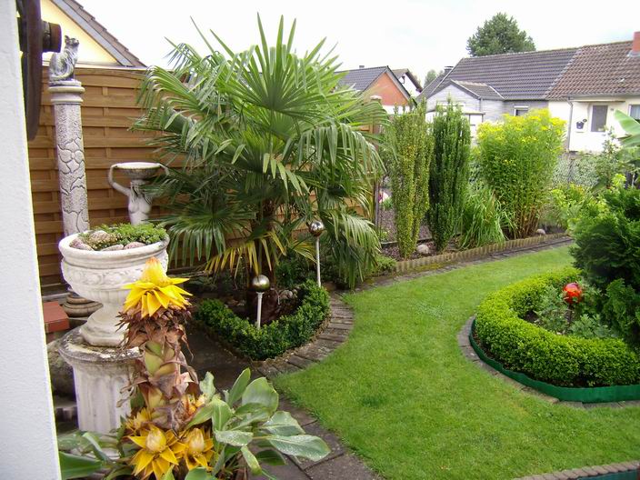 Zwei der Trachies mit 80 cm Stammhöhe blühen mittlerweile schon im 2. Jahr.