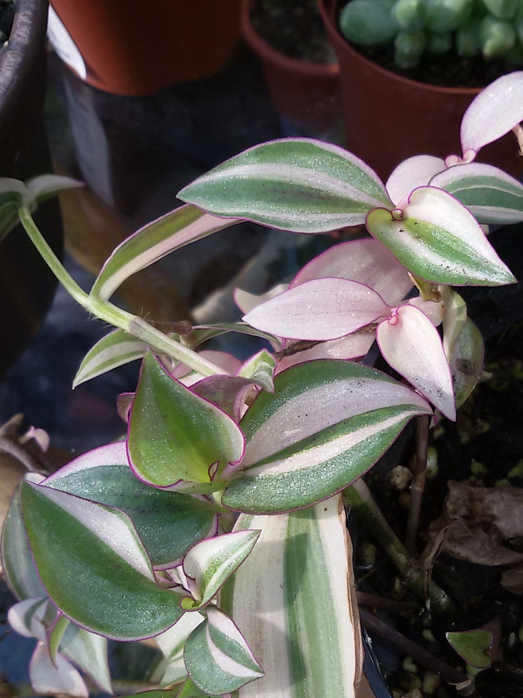 Eine meiner Cyanotis somaliensis hat die erste Blüte offen, und von meiner variegaten Tradescantia sillamontana habe ich mir ein abgebrochenes - nicht panaschiertes - Stück eingetopft welches nun mit vielen hellen Anteilen weiter wächst