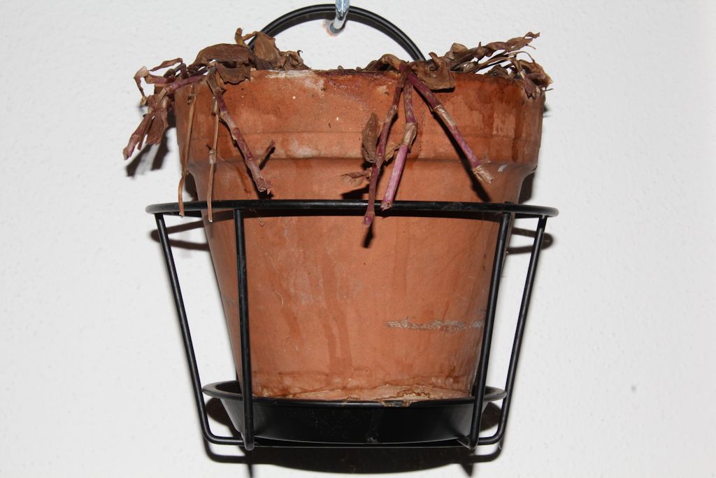 Von dem Verwelkten habe ich auch jetzt nur das weggeschnitten, was über dem Rand des Topfes hing. Alles andere bleibt dran bis es wärmer wird.