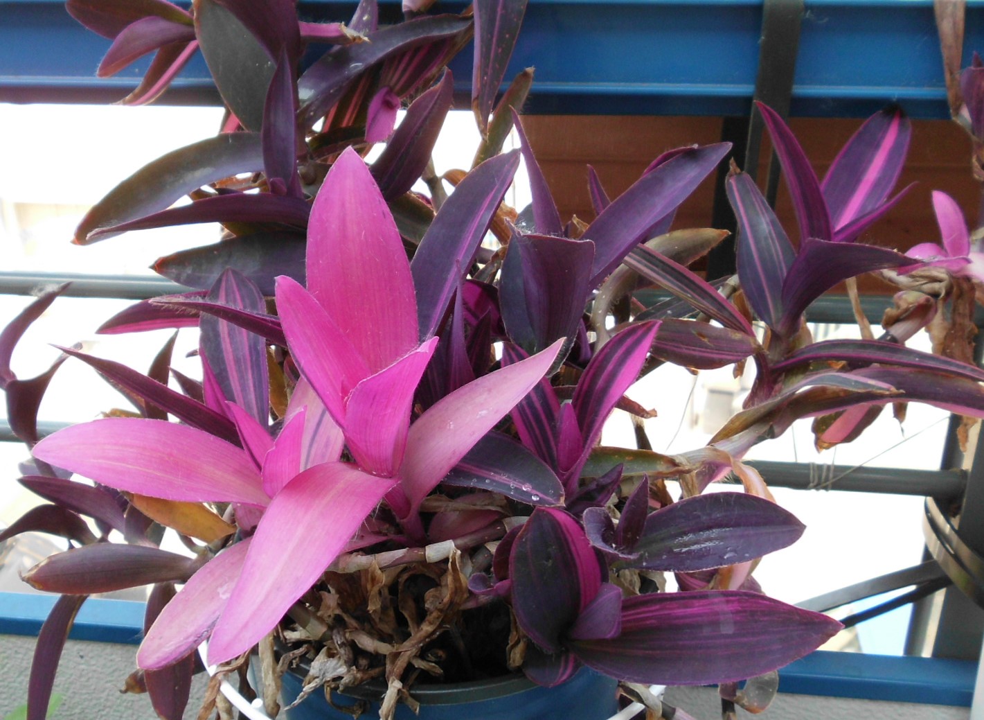 Ich wusste bisher gar nicht, dass in einem Boot mehrere Blüten sitzen! Aber offensichtlich blüht da eine nach der anderen auf. Dabei ist die auch ohne Blüten schon eine schöne Pflanze mit den lila Blattunterseiten... Kann man übrigens ganz einfach aus Samen ziehen, die Mutterpflanze im Nachbarbüro hat schon den ganzen Flur erobert.