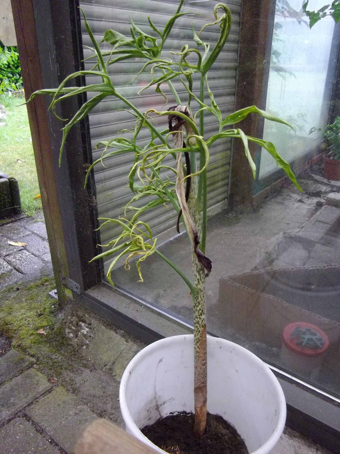 Also bekam ich diese heute, aber Sie sieht etwas mitgenommen aus (hier war es knochentrocken und heiß) und das gute Stück wurde tagelang nicht mehr gewässert.