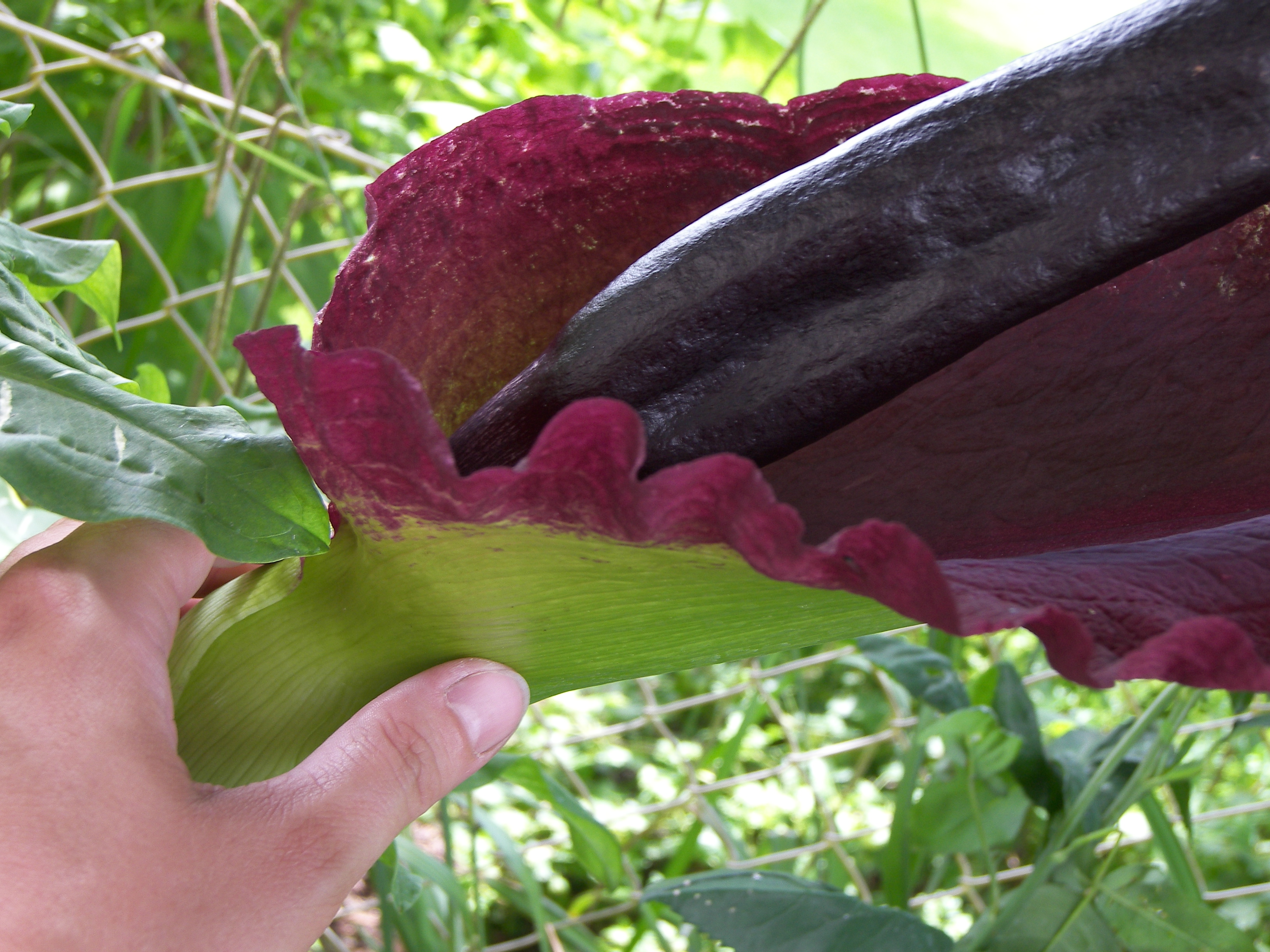 Ein Kollege bat mich kürzlich eine Pflanze mit einer Riesenblüte zu bestimmen, von der er keinen Schimmer hat, wo die hergekommen sein könnte.
