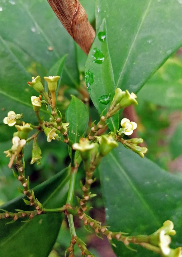 Vielleicht kann mir jemand weiterhelfen bei der Namensfindung eier hier abgebildeten, rankenden Pflanze, die in einem Tropenhaus mit Euphorbia tuberifera (Angola) tituliert war. Der Artname stimmt sicher nicht. Der Familienname könnte jedoch zutreffen, da Stiele und Blätter Milchsaft führen. Unter den Wolfsmilchgewächsen habe ich bisher keine gefunden, die der hier abgebildeten gleicht.