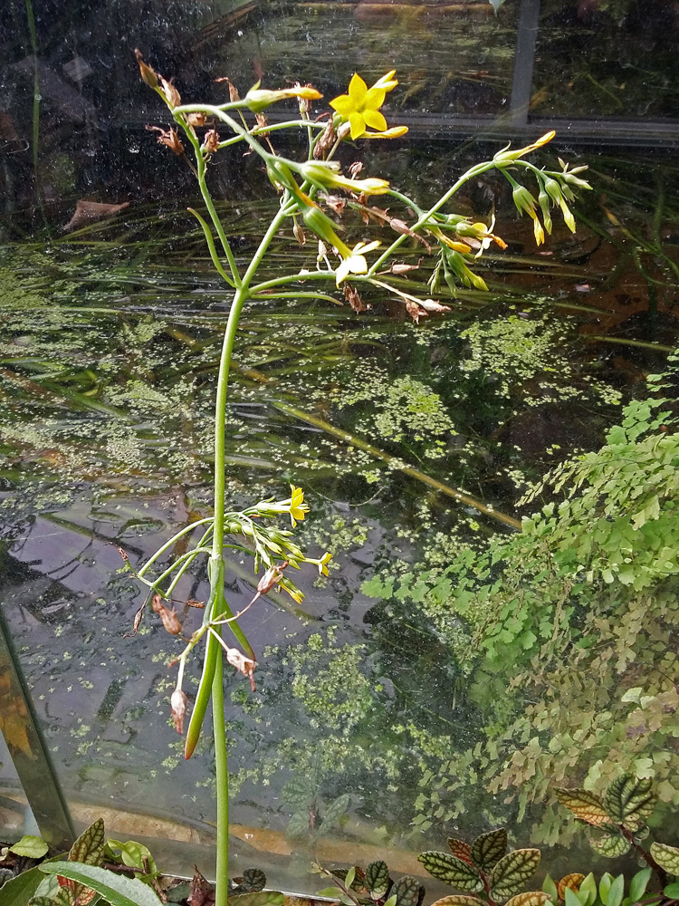 Im Tropenhaus eines Botanischen Gartens fand ich kürzlich in einem angelegten Feuchtbiotop eine gelb blühende Pflanze (s. Fotos), die leider unbeschildert war. Für eine Bestimmung wäre ich sehr dankbar.
