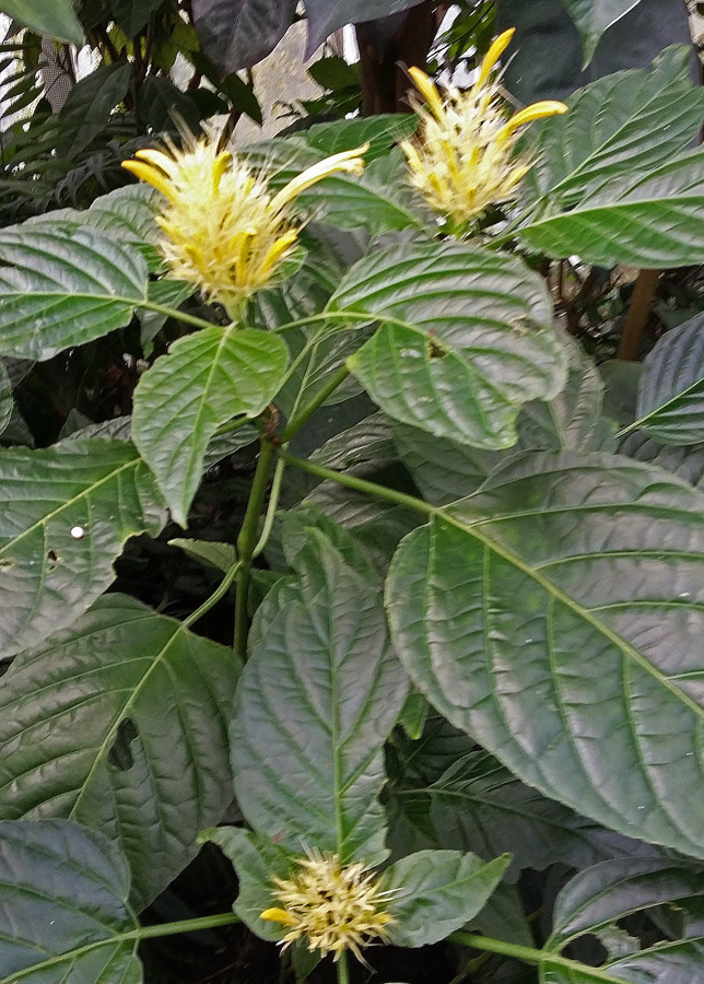 Vor wenigen Tagen habe ich im Schmetterlingshaus der Insel Mainau eine hier abgebildete, strauchartig wachsende, unbeschilderte Pflanze gesehen, die ich nicht zuordnen kann. Für Eure Hilfe wäre ich sehr dankbar!