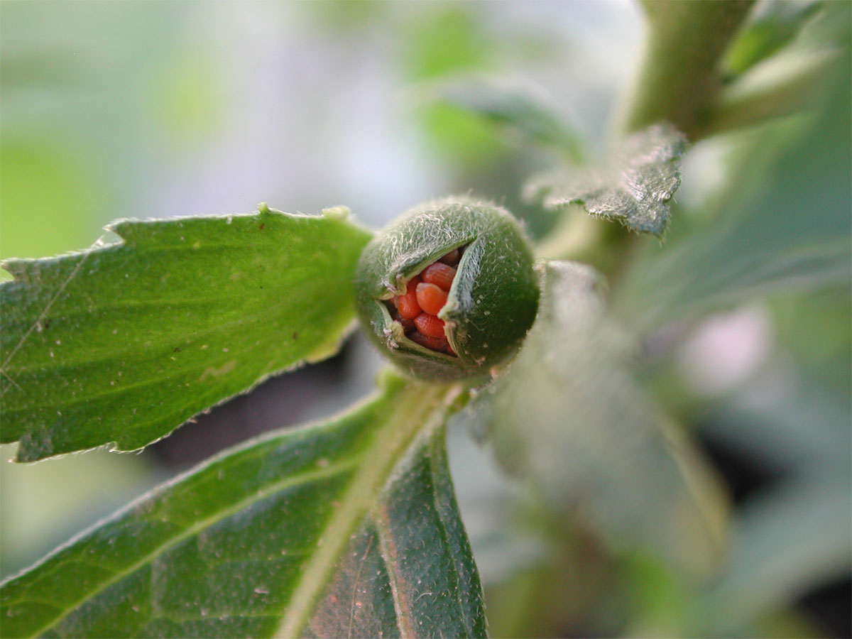 Die Samenkapsel an der Pflanze trocken lassen und warten bis sie aufbricht um die Samen zu entnehmen.
