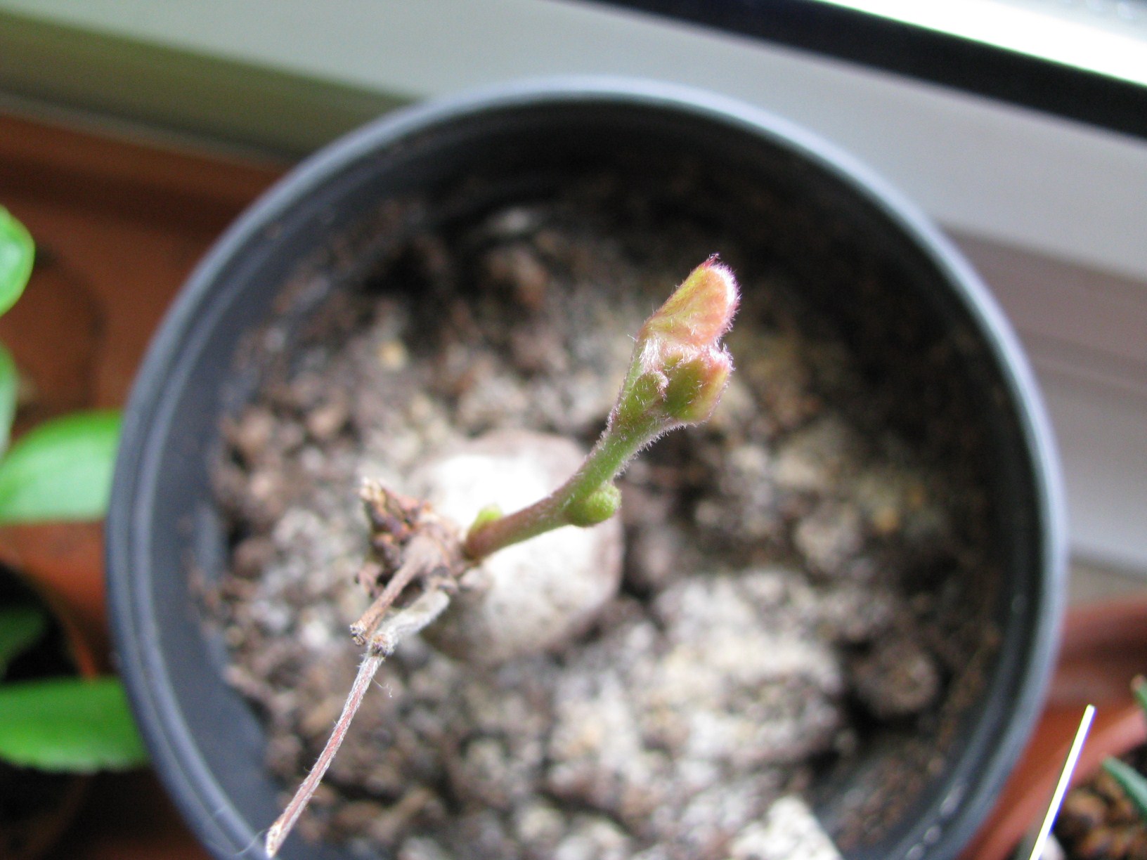 Vor etwa einer Woche habe ich morgens im verschlafenen Kopf beim Rolladen-Hochziehen meine Tylosema fassoglensis runtergerissen. Sie hing in einem Rankgitter und blieb damit hängen, das heißt, die Last hing an den Blattachseln. Der Topf fiel runter und sie hat einen eher kleinen Caudex, daher war es wohl nicht sehr schwer.
