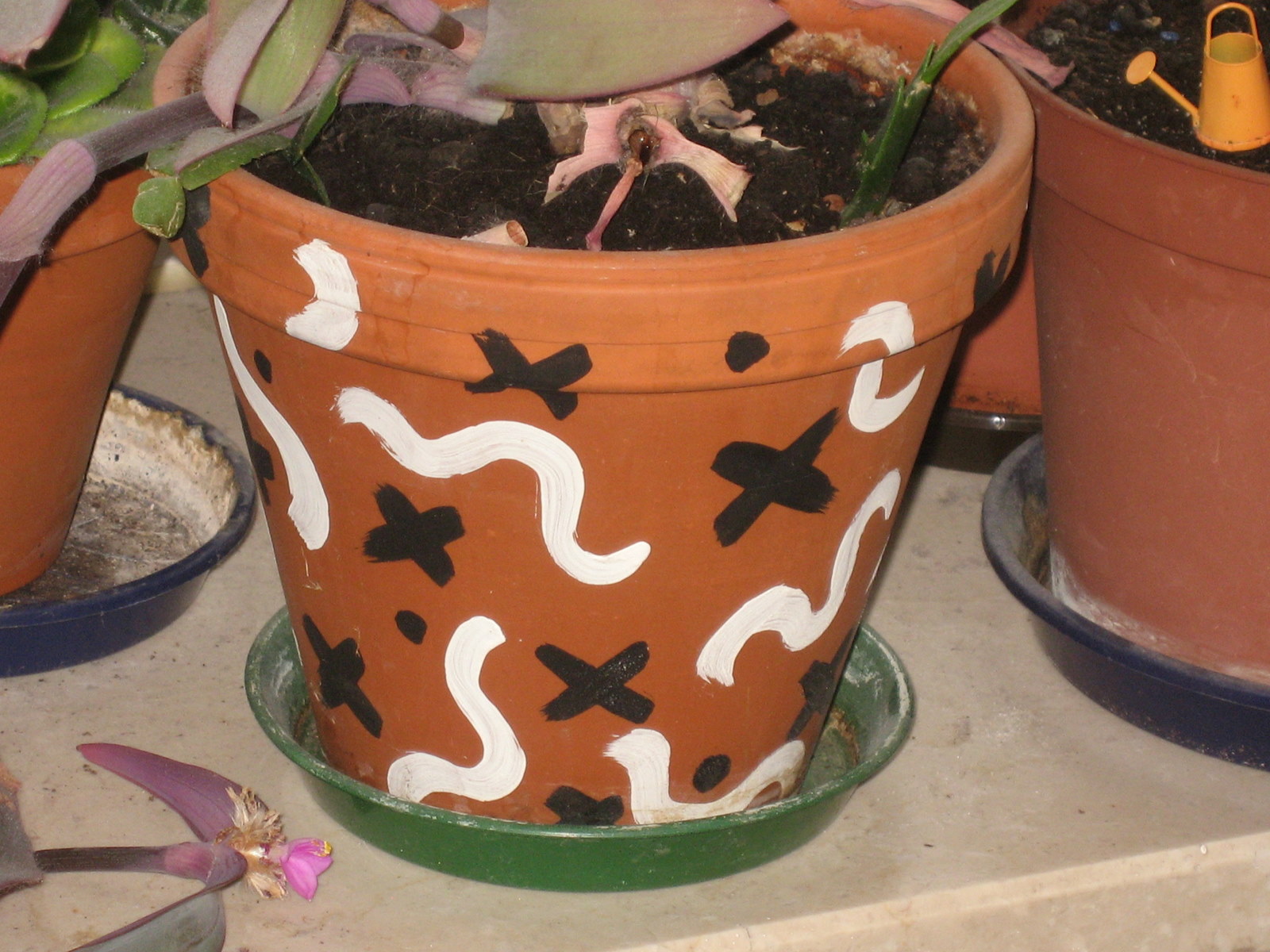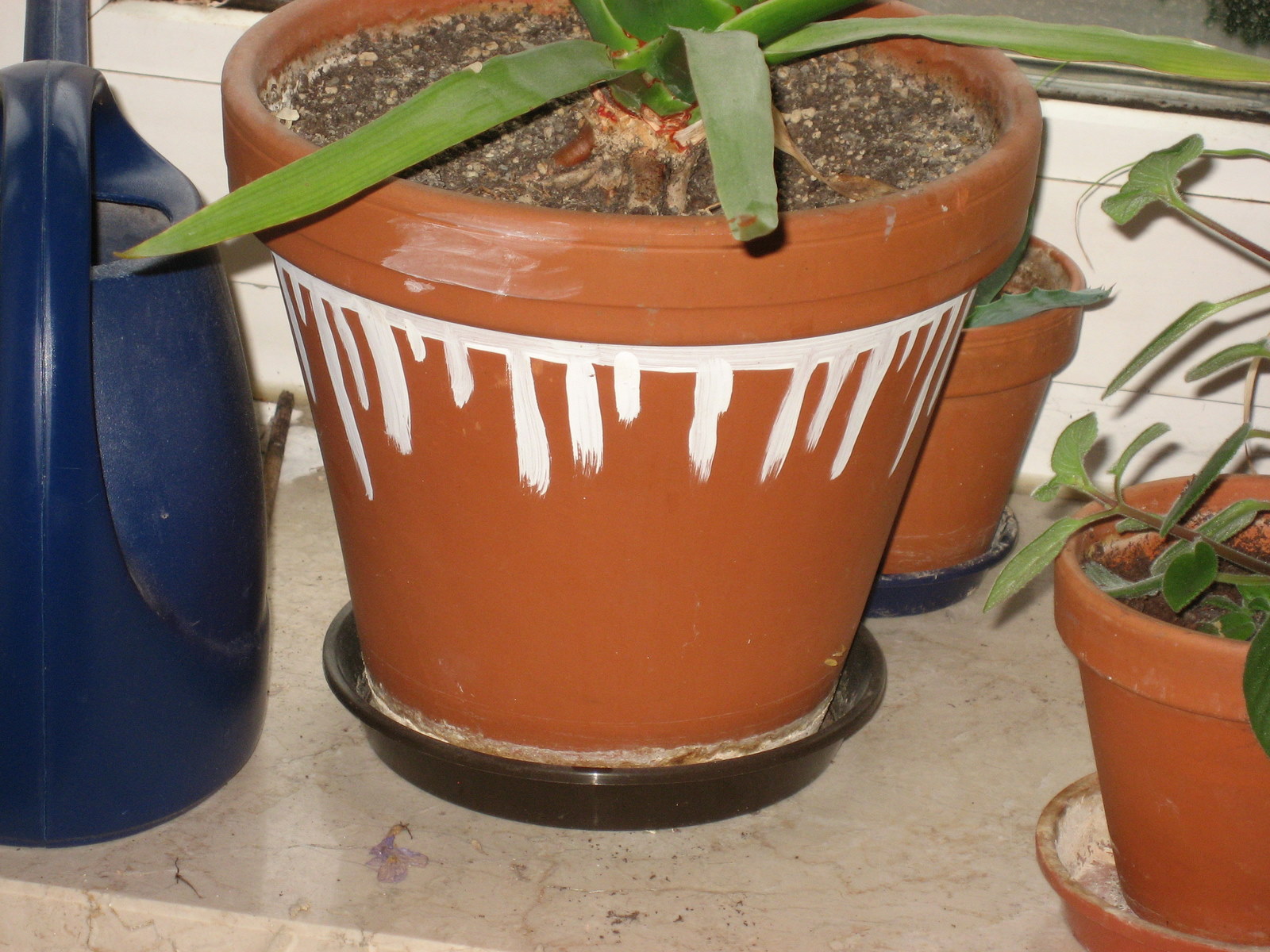 In der Küche habe ich hauptsächlich Terracotta-Übertöpfe, damit meine Euphorbien einen sicheren Stand haben.