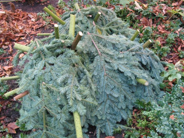 - in/um die zurück geschnitten Mammutblattstiele Tannenzweige reihen, um ein Luftpolster zu erhalten.