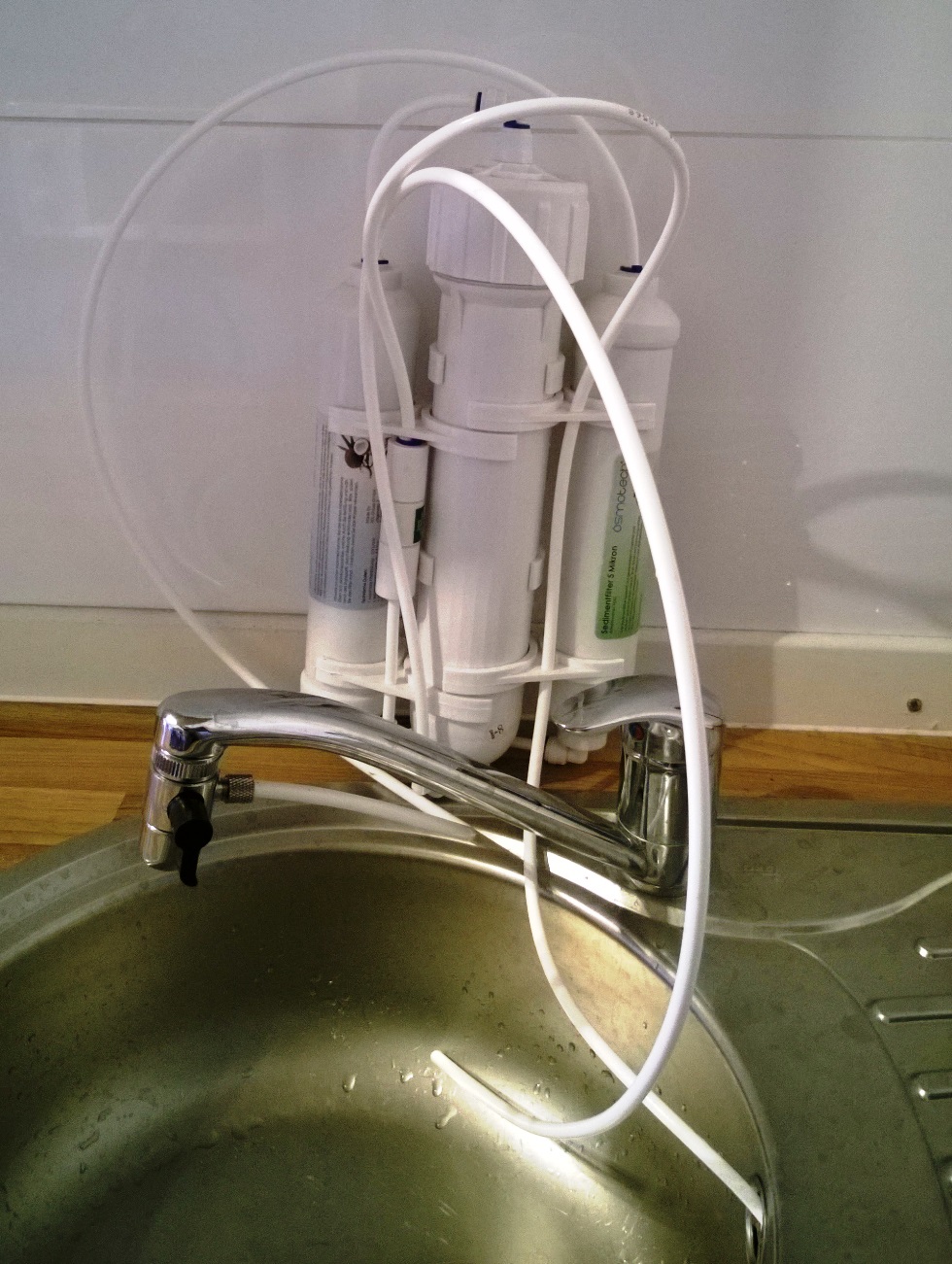 Hier ein Bild meiner Anlage, angeschlossen am Wasserhahn: