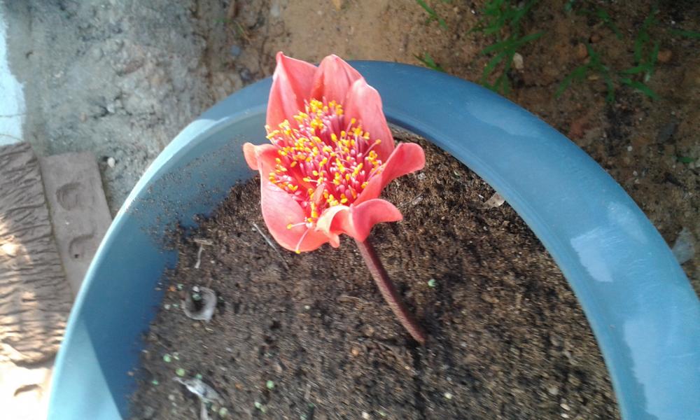Haemanthus coccineus, eine Blutblumen-Art aus dem westlichen Südafrika. In der Pflege ist zu beachten, daß alle winterwachsenden Zwiebelpflanzen aus Südafrika diesen Rhythmus bei uns auch beibehalten. Sie fängt also jetzt nach der Blüte an die Blätter zu schieben. Damit diese nicht zu lang und weich werden, ist ein sonniger und ziemlich kühler Standort nötig. Die Temperaturen können nachts fast an die 2° ran, sollten tagsüber aber wieder auf mindestens 19° C ansteigen.