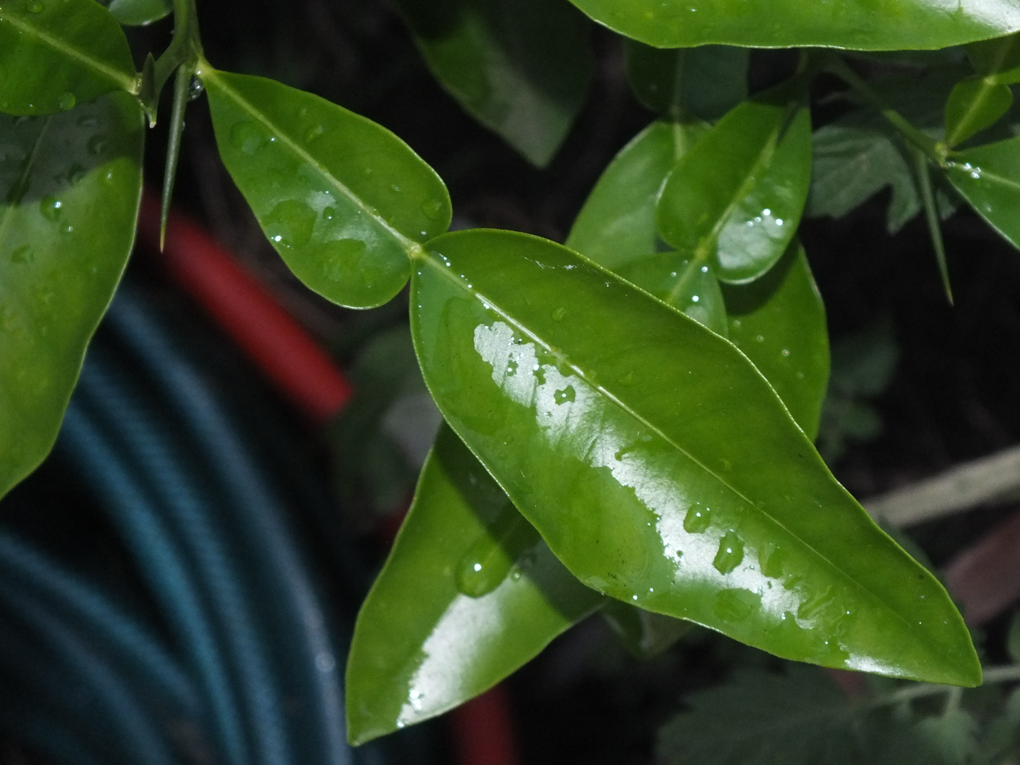 Die Details: Der mit dem Doppelblatt ist immer grün. Scheint eine Art Zitronenbaum zu werden.