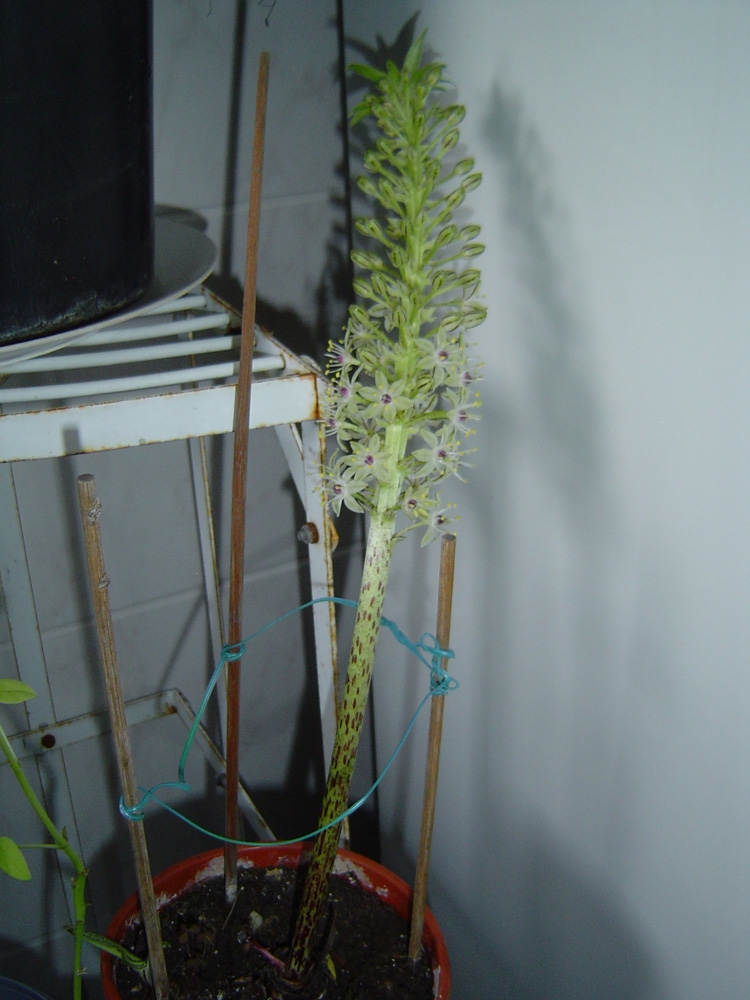 Hallo, hab im Sommer eine Unbekannte bekommen und war in der Annahme, es handele sich um eine Blutblume. Die Blätter hatte eine solche Form, allerdings mit dunkelroten Streifen. Sie stand im Garten und hatte die Blätter eingezogen. Jetzt im Winterstandort hat sie plötzlich eine Blüte geschoben. Bin verwirrt. Was ist das?